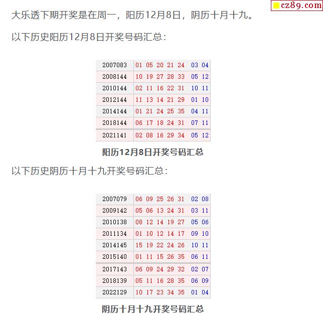 历史上的今天大乐透12月8日开奖号码汇总
